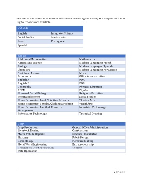 The tables below provide a further breakdown indicating specifically the subjects for which