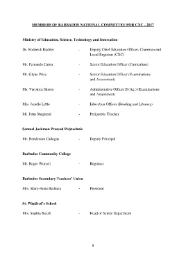 MEMBERS OF BARBADOS NATIONAL COMMITTEE FOR CXC - 2017