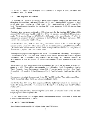 The May-June 2017 sitting of the Caribbean Advanced Proficiency Examinations (CAPE) shows that