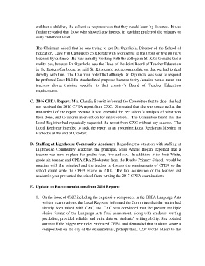 not received the 2016 CPEA report from CXC. She stated that she was concerned at the
