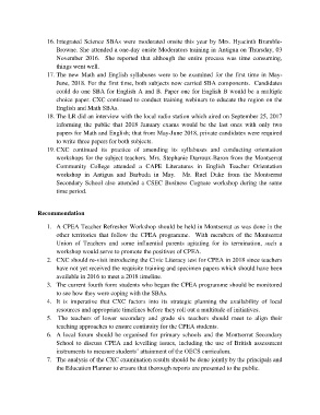 1. A CPEA Teacher Refresher Workshop should be held in Montserrat as was done in the