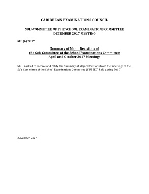 Sub-Committee of the School Examinations Committee (SUBSEC) held during 2017.