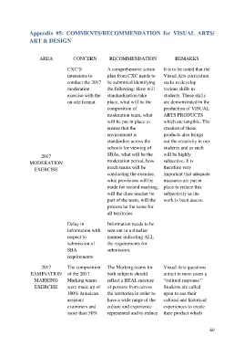 Appendix #5: COMMENTS/RECOMMENDATION for VISUAL ARTS/
