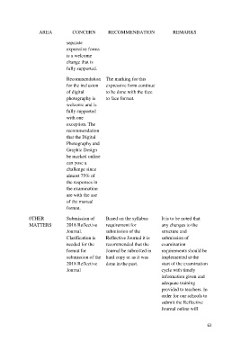 AREA CONCERN RECOMMENDATION REMARKS