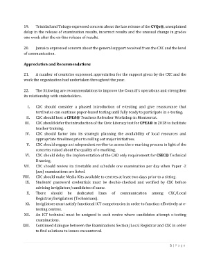 20. Jamaica expressed concern about the general support received from the CXC and the level