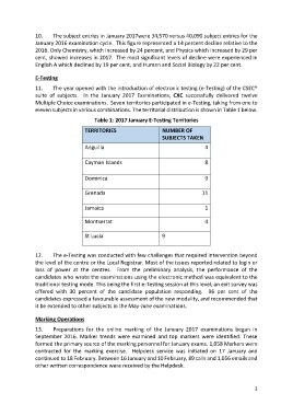 Multiple Choice examinations. Seven territories participated in e-Testing, taking from one to