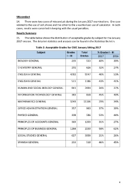 Table 2: Acceptable Grades for CSEC January Sitting 2017