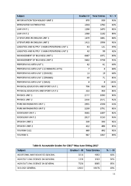 Table 8: Acceptable Grades for CSEC® May-June Sitting 2017
