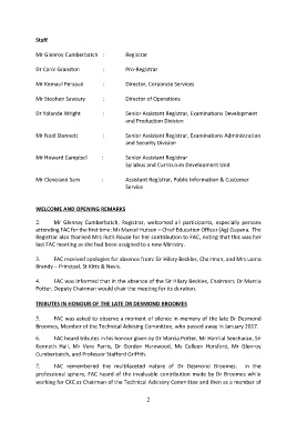 2. Mr Glenroy Cumberbatch, Registrar, welcomed all participants, especially persons