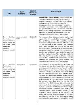 The Caribbean Tourism Unit 1 1005540109 The Chief Examiner had reported that “sections of the