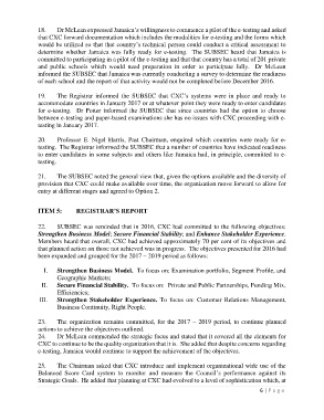 22. SUBSEC was reminded that in 2016, CXC had committed to the following objectives: