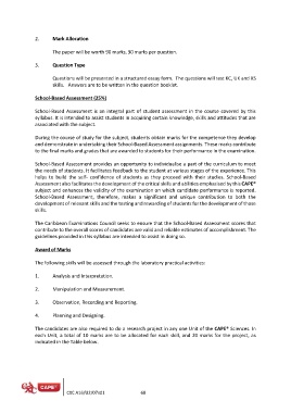 and demonstrate in undertaking their School-Based Assessment assignments. These marks contribute