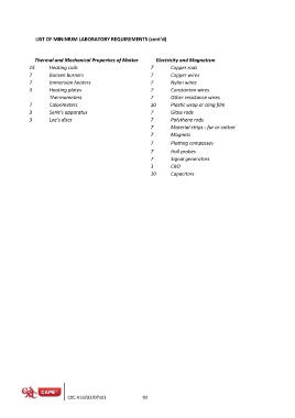 LIST OF MINIMUM LABORATORY REQUIREMENTS (cont’d)