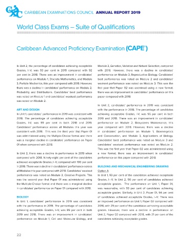 2019 and 2018. There was an improvement in candidates’ Unit 2, Paper 02 compared with 2018, with 21 per cent of the