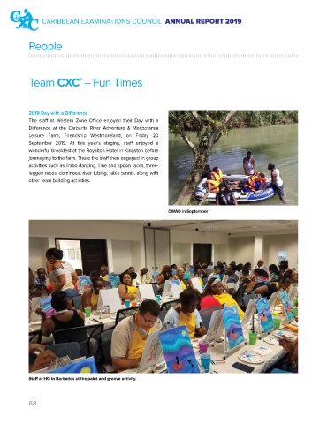 Staff at HQ in Barbados at the paint and groove activity.