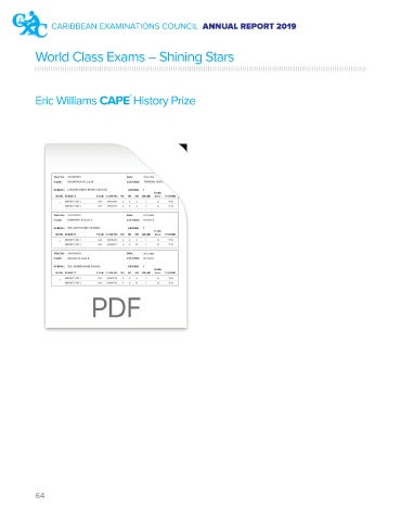 CARIBBEAN EXAMINATIONS COUNCIL ANNUAL REPORT 2019 World Class Exams – Shining Stars ® Eric Williams CAPE History Prize 64