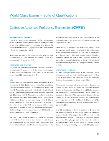 Caribbean Legal Systems was consistent with 2018 as 76 per In Unit 2, candidates’ performance declined by 2 per cent at