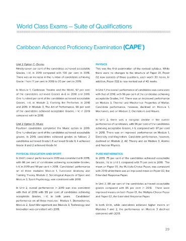 with 98 per cent of candidates achieving acceptable Grades, Grades, I-V, in Unit 1, compared with 71 per cent in 2018. The