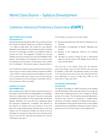 PERFORMING ARTS                                     The Review Committee for CAPE® Accounting, at its meeting
