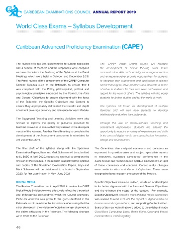 The revised syllabus was disseminated to subject specialists   The CAPE® Digital Media course will facilitate
