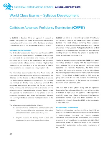 granted, the syllabus and copies of the specimen examination Committee for revising the CAPE® Information Technology