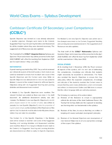 The final draft of the CCSLC® Integrated Science Syllabus and   Specimen Paper and answer key will be presented to the April