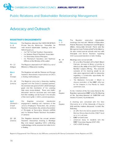 Registrar’s Engagements* from February to July 2019 were conducted by Mr Glenroy Cumberbatch, former Registrar and CEO.