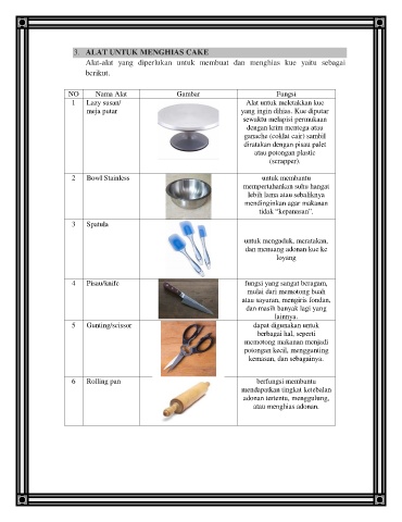Alat-alat yang diperlukan untuk membuat dan menghias kue yaitu sebagai