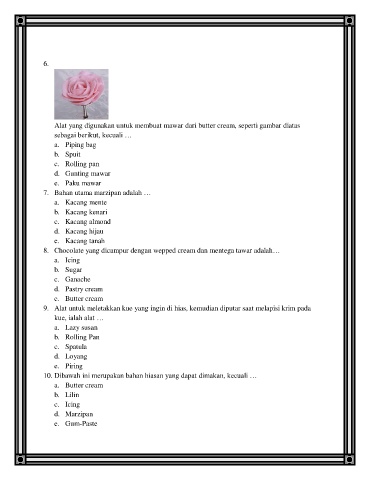 10. Dibawah ini merupakan bahan hiasan yang dapat dimakan, kecuali …