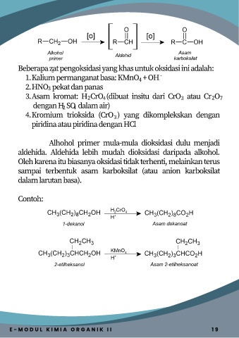 Alhohol primer mula-mula dioksidasi dulu menjadi