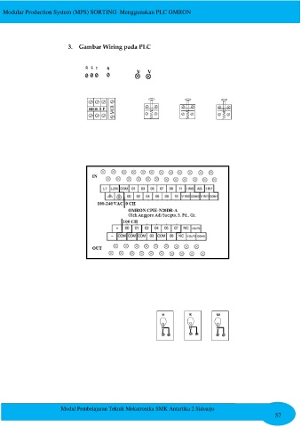 Modular Production System (MPS) SORTING Menggunakan PLC OMRON 3. Gambar Wiring pada PLC V V Modul Pembelajaran Teknik Mekatronika SMK Antartika 2 Sidoarjo 57