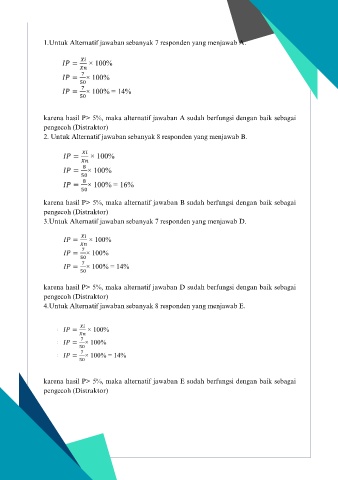 karena hasil P> 5%, maka alternatif jawaban E sudah berfungsi dengan baik sebagai