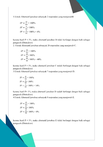 karena hasil P < 5%, maka alternatif jawaban E tidak berfungsi dengan baik sebagai