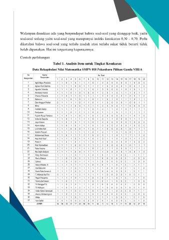 Tabel 1. Analisis Item untuk Tingkat Kesukaran