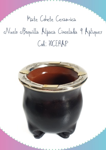 Mate Cohete Ceramica c/Vuelo c/Boquilla Alpaca Cincelada 4 Apliques Cod: 70CERAP