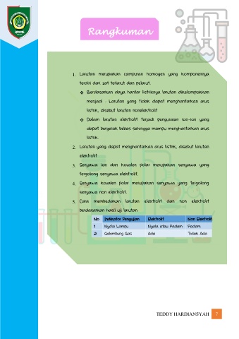 2. Larutan yang dapat menghantarkan arus listrik, disebut larutan