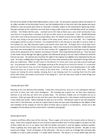 came after lunch and we discussed municipal affairs, then The Shaikh arrived and we talked for several hours,