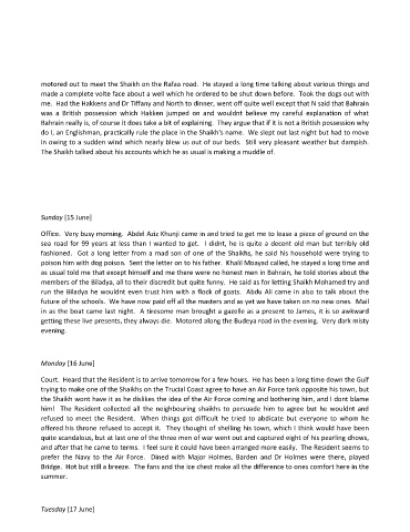 as usual told me that except himself and me there were no honest men in Bahrain, he told stories about the