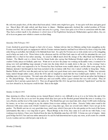 Sunday 1st March 1931