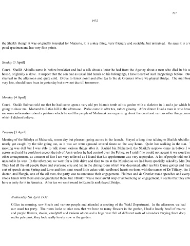 Meeting of the Biladya at Muharrak, warm day but pleasant going across in the launch. Stayed a long time talking to Shaikh Abdulla and