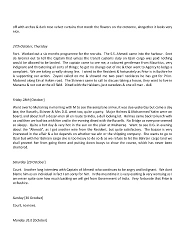 Went over to Muharraq in morning with M to see the aeroplane arrive, it was due yesterday but came a day
