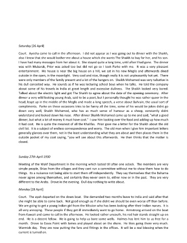 Court. Ayesha came to call in the afternoon. I did not appear as I was going out to dinner with the Shaikh,