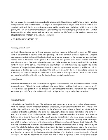 holiday. Did nothing much in the morning. In the afternoon I motored out to Sakhrir with Prior and the