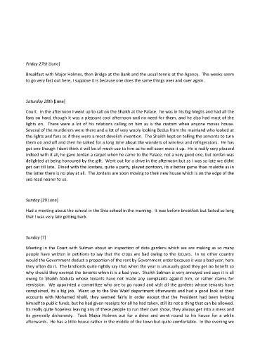 Breakfast with Major Holmes, then Bridge at the Bank and the usual tennis at the Agency. The weeks seem