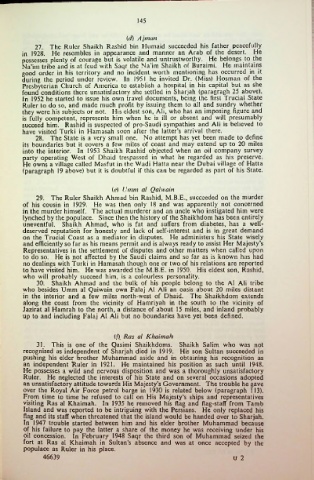 29. The Ruler Shaikh Ahmad bin Rashid, M.B.E., succeeded on the murder
