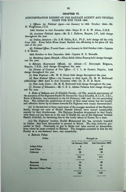 1. Officers. (a) Political Agent.—1st January to 18th October 1940—Mr.