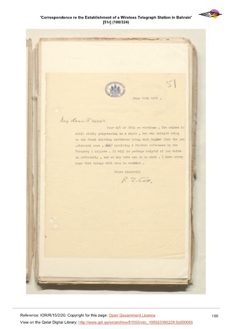 'Correspondence re the Establishment of a Wireless Telegraph Station in Bahrain'