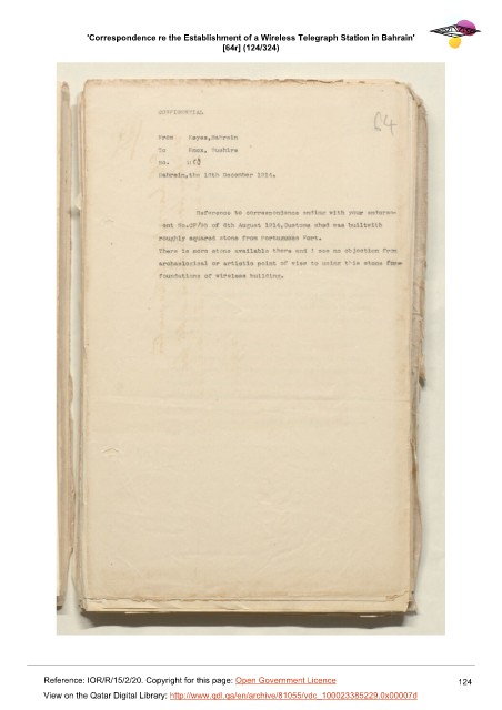 'Correspondence re the Establishment of a Wireless Telegraph Station in Bahrain'