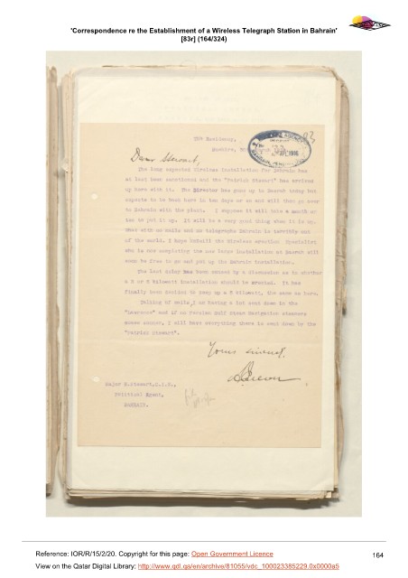 'Correspondence re the Establishment of a Wireless Telegraph Station in Bahrain'