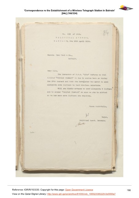 'Correspondence re the Establishment of a Wireless Telegraph Station in Bahrain'
